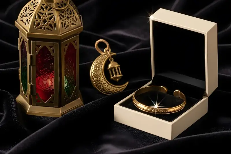 أبدع المصممون هذا العام في تقديم أساور مستوحاة من الفن الإسلامي، حيث كان للزخارف الهندسية والأرابيسك حضور لافت. تظهر تلك الزخارف على الذهب الأصفر والذهب الوردي لتضفي طابعًا عربيًا أصيلًا يليق بروح الشهر الكريم. وعملت أبرز دور المجوهرات مثل "كارتييه" و"بولغاري" على دمج تفاصيل الأرابيسك مع تصاميم عصرية، إيجاد مزيج فريد من العراقة والحداثة. كما برزت نقوش الهلال والنجوم التي ترمز للشهر الفضيل، وغالبًا ما نجدها مرصعة بأحجار ملونة مثل الفيروز واللازورد.