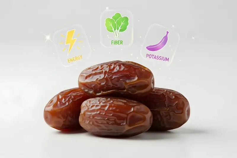خلال ساعات الصيام الطويلة، يحتاج الجسم إلى طاقة مستقرة ليواجه تحديات اليوم. التمر يقدم هذا الدعم من خلال خليط السكريات الطبيعية مع الألياف الغذائية، ما يوفر إفراجاً تدريجياً للطاقة ويمنع حدوث هبوط مفاجئ في مستوى السكر بالدم. لهذا، يُعتبر تناول ثلاث حبات من التمر على السحور وسيلة فعالة لمنع الشعور بالدوخة أو التعب المفاجئ خلال النهار. الجدير بالذكر أن التمر يدعم أيضًا وظائف القلب ويعزز النشاط البدني بفضل محتواه العالي من المعادن، خاصة البوتاسيوم والماغنيسيوم.