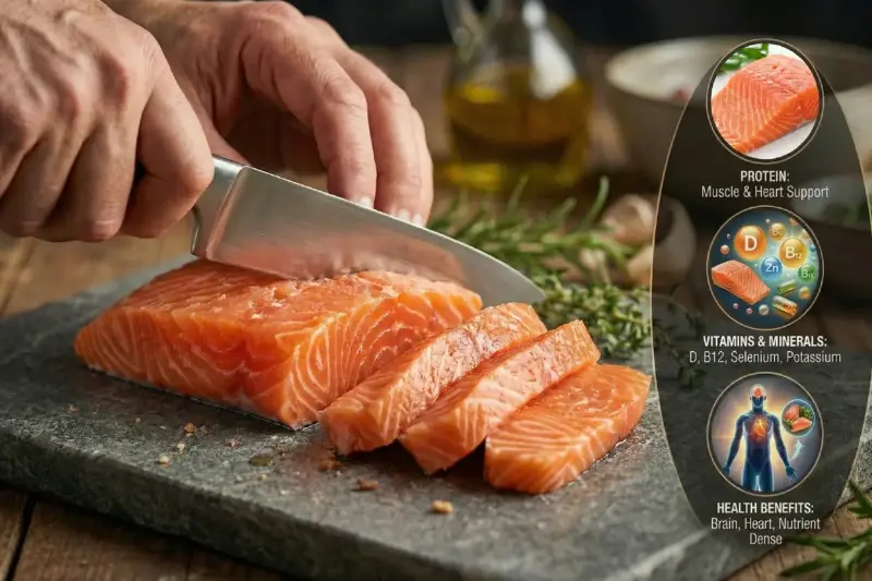 يعتبر السلمون من أكثر أنواع الأسماك فائدة للصحة، فهو غني للغاية بالأحماض الدهنية المعروفة باسم أوميغا 3. هذه العناصر الغذائية أثبتت فعالية استثنائية في حماية القلب والأوعية الدموية والحد من كثير من المخاطر المرتبطة بأمراض القلب. ويعد تناول السلمون بشكل منتظم خياراً ذكياً ومغذياً لأي شخص يسعى للحفاظ على صحة قلبه، كما أكد العديد من خبراء التغذية والبحوث الطبية الحديثة.