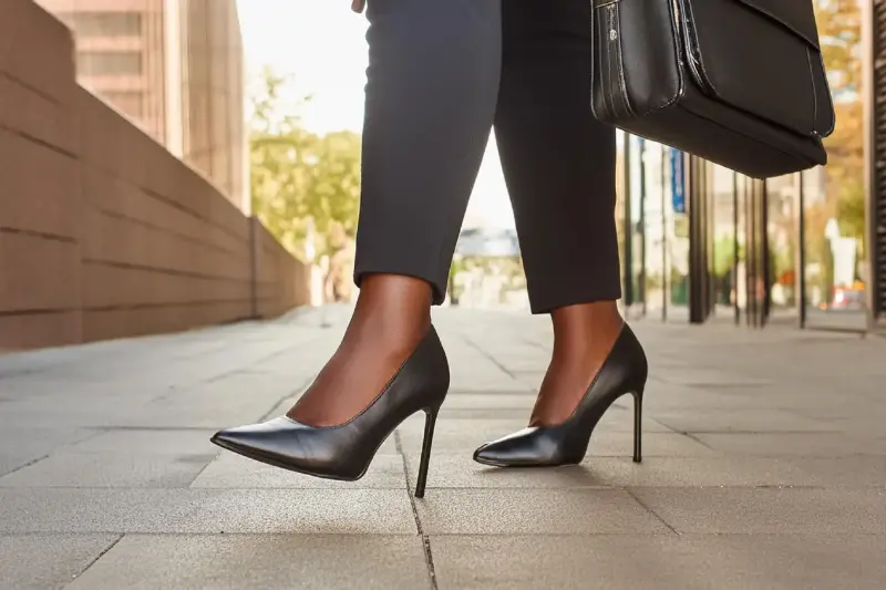 - الكعب المربع: يجمع بين الحدة والعملية للأزياء الموحدة والمناسبات شبه الرسمية.